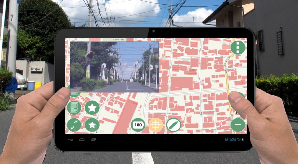 スマートフォンやタブレット上に表示される地図により、現在位置を特定し、そこに種々の調査データや写真を記録します。 会社に帰ってからパソコンに接続して、取得した現場データをパソコンのデータベースへ保存します。 パソコン上でも電子地図上で、調査データの確認、修正と活用が可能です。