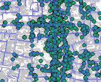 川越まつりナビにより収集された利用者の位置情報を地図上にプロットし、各時間ごとの分布を表示してみました。人混みの時間ごとの推移がビジュアルに把握できます。